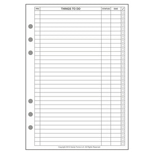 This To-Do List planner insert from Handy Forms is just what you need for your A5 size notebook. List each item you have to do. Assign a priority and a due date/time, then check it off as you complete the task. There are 50 sheets in a packet.