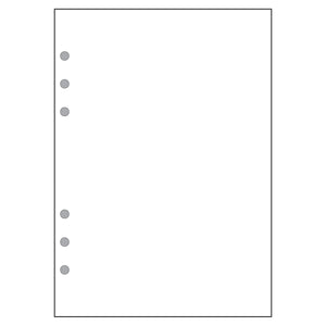 • Punched with 2 groups of 3 holes spaced 3/4in (19mm) with 2-3/4in (70mm) between the groups to fit the A5 standard size notebook.