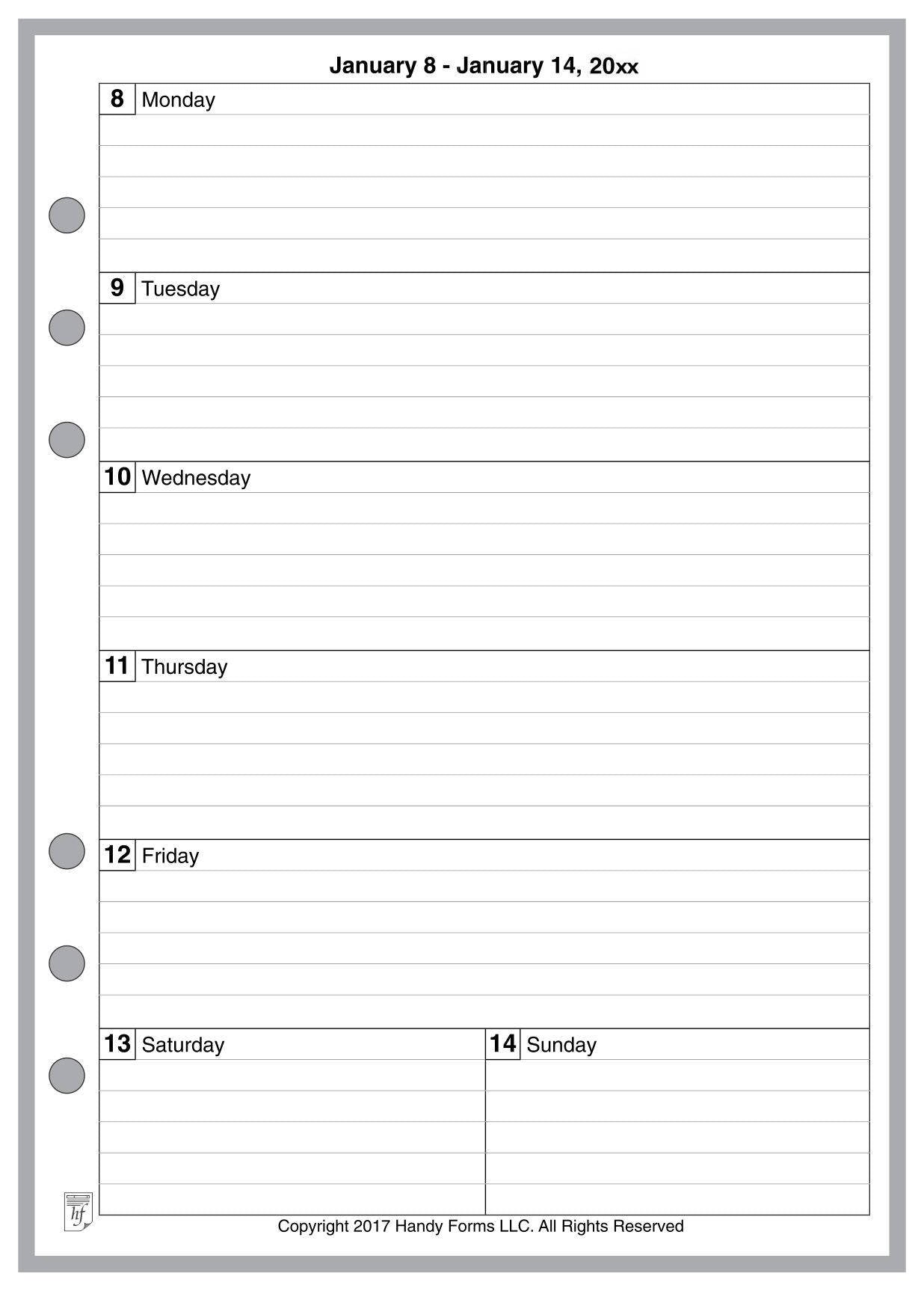 A5 Weekly and Monthly Planner, 1 Page Per Week, 2 Pages Per Month, With Lines, Style B