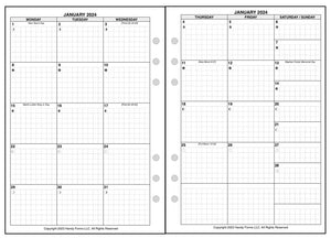 If selected, the monthly spreads are merged with the weekly pages so that the month appears immediately before the weekly pages where the first day of that month occurs. A durable plastic tab is attached to the weekly page just before the month. The monthly pages are available in 3 different formats called 6-column, 7-column, and 8-column. Please see the images for examples.