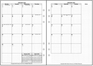 If selected, the monthly spreads are merged with the weekly pages so that the month appears immediately before the weekly pages where the first day of that month occurs. A durable plastic tab is attached to the weekly page just before the month. The monthly pages are available in 3 different formats called 6-column, 7-column, and 8-column. Please see the images for examples.