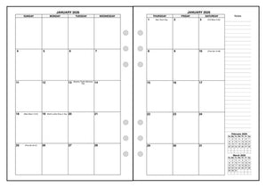 A5 Weekly and Monthly Planner, 2 Pages Per Week, 2 Pages Per Month, Style V