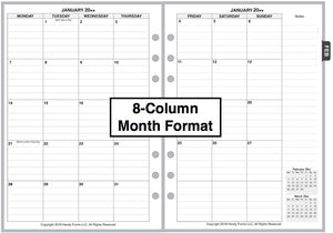 This is a daily and monthly planner insert for the popular A5 size notebooks. Page size is A5 standard 5.83" x 8.27" (148mm x 210mm). The week starts on Sunday or Monday. Each day is on one page. The page provides appointment time slots from 6:00 am to 7:00 pm plus space for general notes. Also included are 1-page yearly calendars for the current year and next year.