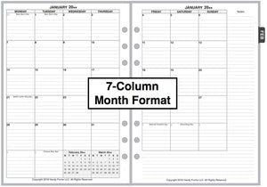 This is a daily and monthly planner insert for the popular A5 size notebooks. Page size is A5 standard 5.83" x 8.27" (148mm x 210mm). The week starts on Sunday or Monday. Each day is on one page. The page provides appointment time slots from 6:00 am to 7:00 pm plus space for general notes. Also included are 1-page yearly calendars for the current year and next year.