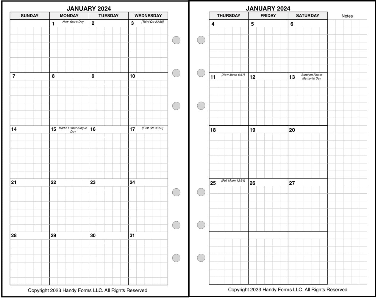 • Punched with 2 groups of 3 holes spaced 3/4in (19mm) with 2in (51mm) between the groups to fit Compact size binders.