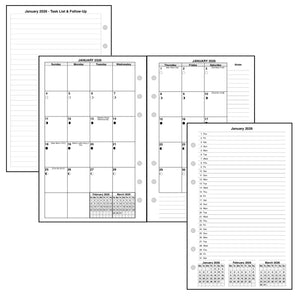 Compact Monthly Planner, 2 Pages Per Month, 7-Column Month, No Lines