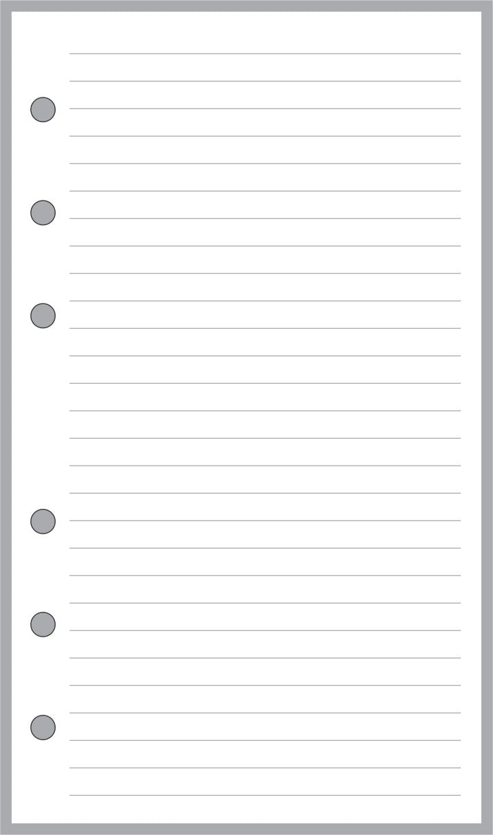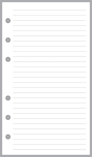 • Punched with 2 groups of 3 holes spaced 3/4in (19mm) with 1-1/2in (38mm) between the groups to fit Pocket size binders.