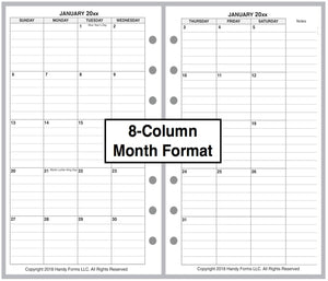 This is a daily and monthly planner insert for the popular Franklin Pocket size notebooks. Page size is Franklin Pocket size 3½" x 6" (89mm x 152mm). Choose the week starting day as Sunday or Monday. Each day is on one page. There is a checkmarked section for Daily Tasks, appointment times from 7:00 am to 7:00 pm, and a block for notes.