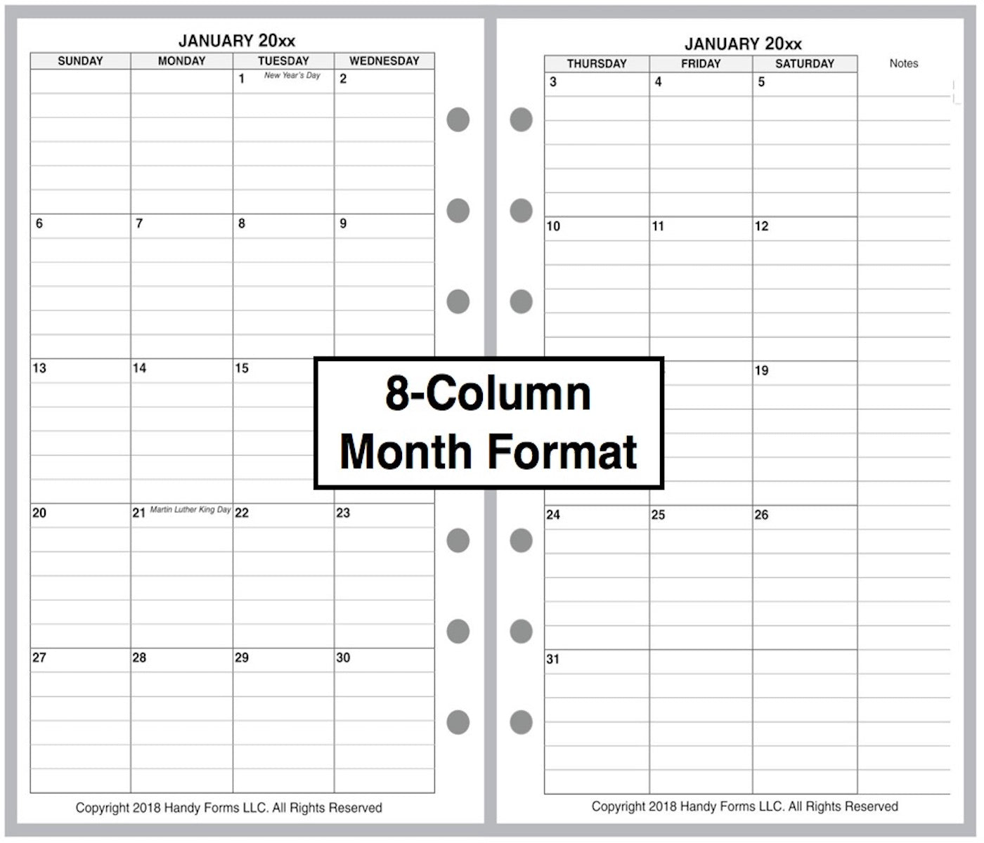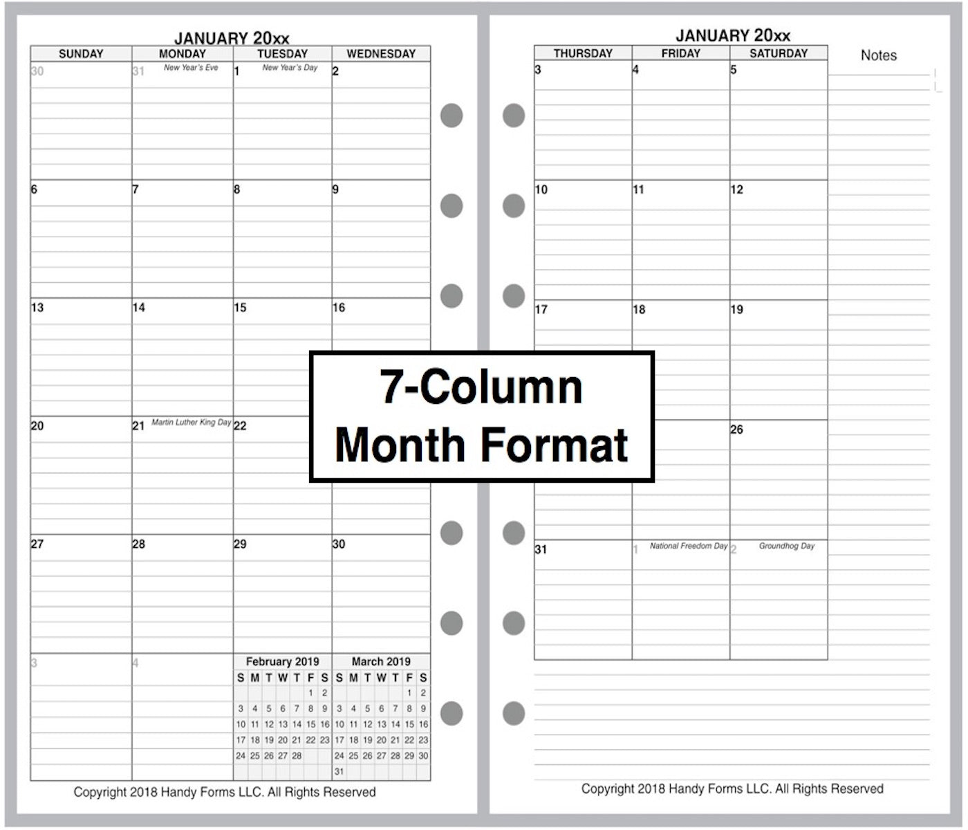 • Punched with 2 groups of 3 holes spaced ¾" (19mm) with 1½" (38mm) between the groups to fit Franklin Pocket size binders.