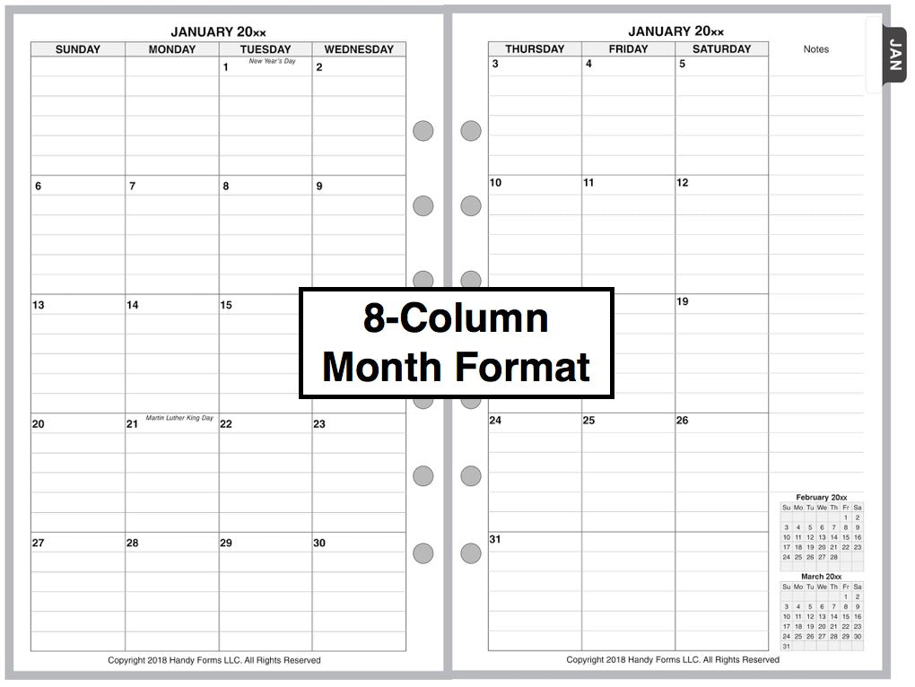 This is a daily and monthly planner insert for the popular Franklin Classic size notebooks. Page size is US half-letter standard 5½" x 8½" (140mm x 216mm). Choose the week starting day as Sunday or Monday. Each day is on one page. There is a checkmarked section for Daily Tasks, appointment times from 7:00 am to 7:00 pm, and a block for notes.