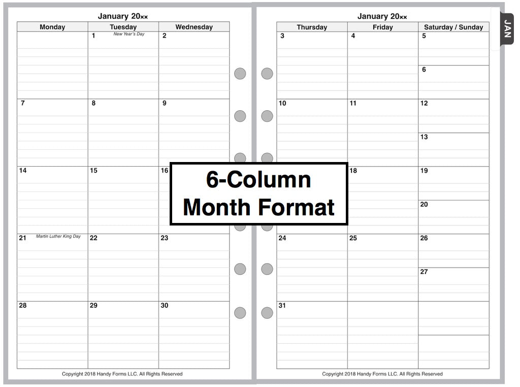 This is a daily and monthly planner insert for Franklin Classic (half-letter) size notebooks. The week starts on Sunday or Monday. Each day is on two pages. The page provides appointment time slots from 7:00 am to 8:00 pm plus space for general notes. Also included are 1-page yearly calendars for the current year and next year.