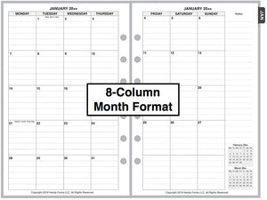 This is a daily and monthly planner insert for Franklin Classic (half-letter) size notebooks. Choose the week starting day as Sunday or Monday. Each day is on two pages. There is a checkmarked To-Do List, a block for Follow-ups, a block for notes, and a page for diary.
