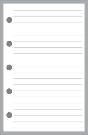 • Punched with 5 equally spaced holes at 3/4" (19mm) to fit the Filofax Micro notebook.