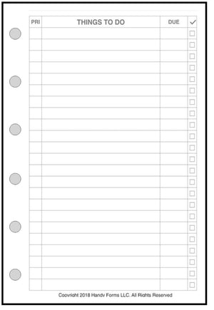 If you depend on a Filofax pocket size notebook to keep yourself on track, this To-Do List planner insert from Handy Forms is just what you need. Record each item you have to do. Assign a priority and a due date/time, then check it off as you complete the task. There are 50 sheets in a packet.