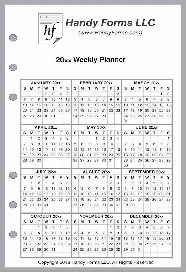 Also included are 1-page yearly calendars for the current year and next year.