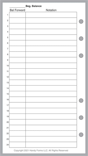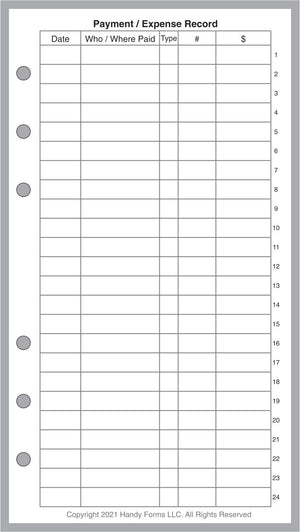 Keep track of payments and expenses with this handy insert for your Filofax Personal size notebook. It can also be used as your check register. With the extra space on the back for notes, you can record business information such as expense purpose, receipt references, people present, etc.