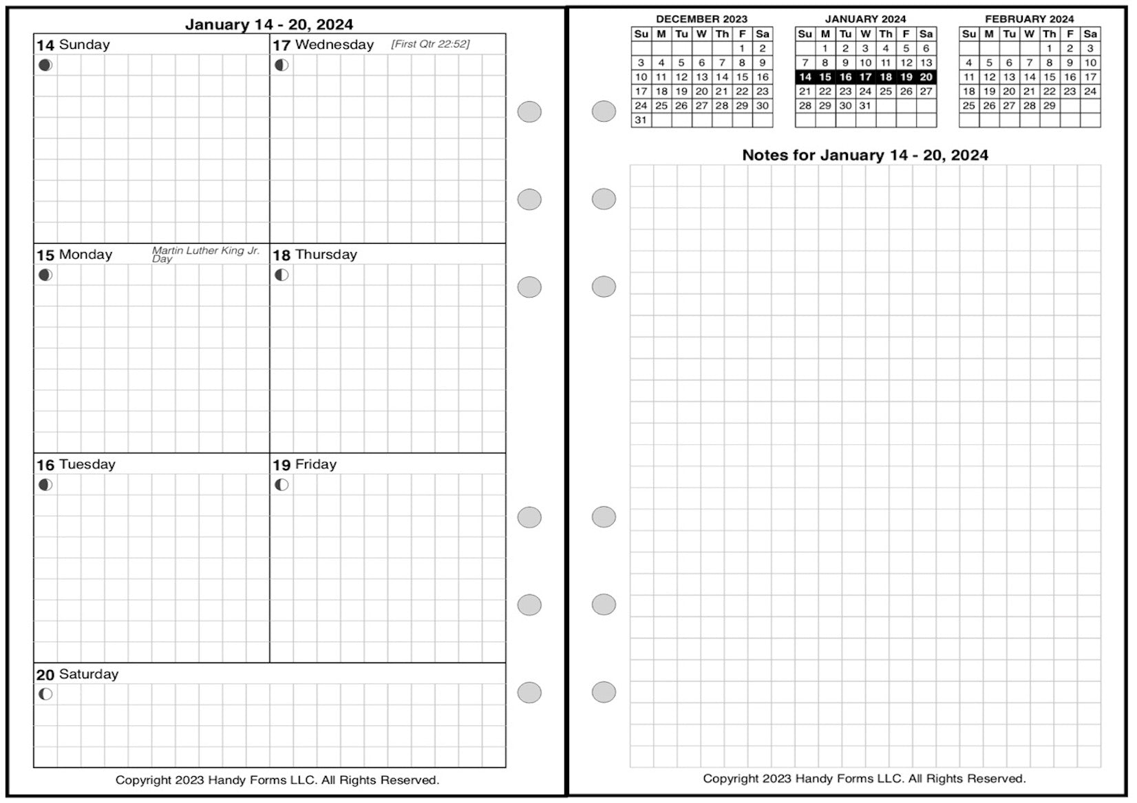 • Punched with 2 groups of 3 holes spaced 3/4in (19mm) with 1-1/2in (38mm) between the groups to fit A6 size binders.