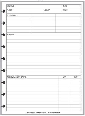 This is a helpful Meeting Planner and Organizer for the Happy Planner Classic size disc bound notebook. This handy form is ideal to help organize and document meetings. Included are spaces for date, time, and location of the meeting, the attendees, the meeting agenda, actions and follow-up including who is responsible. The reverse side of the form is for discussion notes.