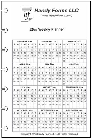 Also included are 1-page yearly calendars for the current year and next year.