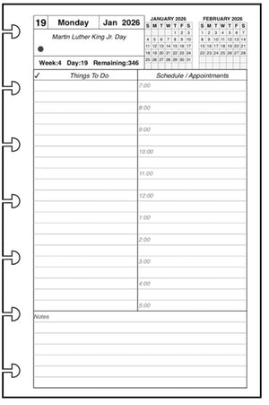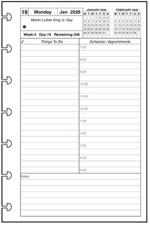 This is a daily and monthly planner insert for Happy Planner Mini size disc bound notebooks. Page is Happy Planner Mini size, 4.6in x 7in. Choose the week starting day as Sunday or Monday. Each day is on one page, and months are 2-page spreads. Each daily page has appointment slots from 7:00 am to 8:00 pm. In addition there is a column for daily activities and a checklist for things to do. Included are mini calendars for the current and next months.