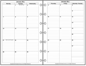 This is a daily and monthly planner insert for the popular HP Mini size notebooks. Page size is Happy Planner Mini 4.6" x 7" (117mm x 178mm). Choose the week starting day as Sunday or Monday. Each day is on one page, and months are 2-page spreads. Each daily page has appointment slots from 7:00 am to 8:00 pm. In addition there is a column for daily activities and a checklist for things to do. The daily activity section is divided into 3 subsections labeled Personal, Family / Home, and Work. The subsection names can be changed through customization. Included are mini calendars for the current and next months.