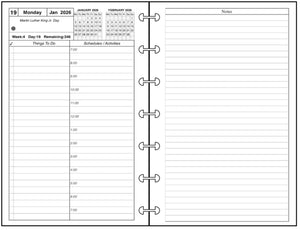 This is a daily and monthly planner insert for Happy Planner Mini size disc bound notebooks. Page is Happy Planner Mini size, 4.6in x 7in. Choose the week starting day as Sunday or Monday. Each day is on two pages, and months are 2-page spreads. Each daily page has appointment slots from 7:00 am to 8:00 pm. In addition there is a column for activities/schedule, and a checklist for things to do. Included are mini calendars for the current and next months.