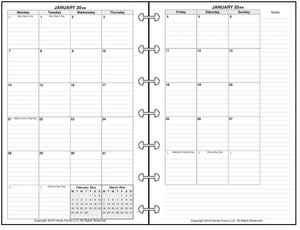 This is a daily and monthly planner insert for HP Mini size notebooks. Choose the week starting day as Sunday or Monday. Each day is on two pages, and months are 2-page spreads. Each daily page has appointment slots from 7:00 am to 8:00 pm. In addition there is a column for daily schedule/activities and a checklist for things to do. The daily activity section is divided into 3 subsections labeled Personal, Family / Home, and Work. The subsection names can be changed through customization. Included are mini calendars for the current and next months.