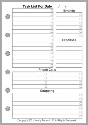 If you depend on a Pocket Plus size organizer to keep yourself on track, this planner insert from Handy Forms will be a lifesaver. Use a page for each day. List your tasks to-do and phone calls, then check them off throughout the day. Plan your errands, and include a shopping list. Record incidental expenses as they occur. The form includes a generous space for additional notes and reminders on the back. There are 50 sheets in a packet