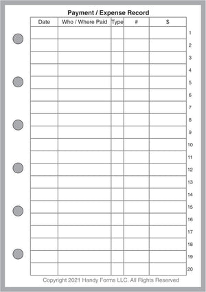 If you carry a Pocket Plus size organizer, this handy planner insert will help you keep track of payments and expenses, and can also be your check register. With the extra space on the back for notes, you can record business information such as expense purpose, receipt references, people present, etc.