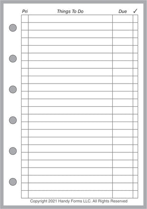 If you depend on a Pocket Plus size organizer to keep yourself on track, this To-Do List planner insert from Handy Forms is just what you need. Record each item you have to do. Assign a priority and a due date/time, then check it off as you complete the task. There are 50 sheets in a packet.