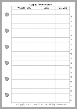 Login/Password reference pages for Pocket Plus size notebooks. notebooks. Includes instructions to encrypt your passwords when writing them down.
