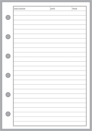 • Extra discussion pages for the meeting manager, punched for the Pocket Plus size notebooks.