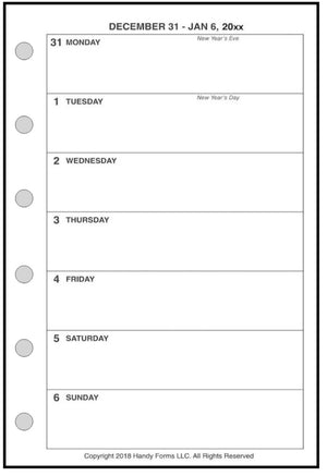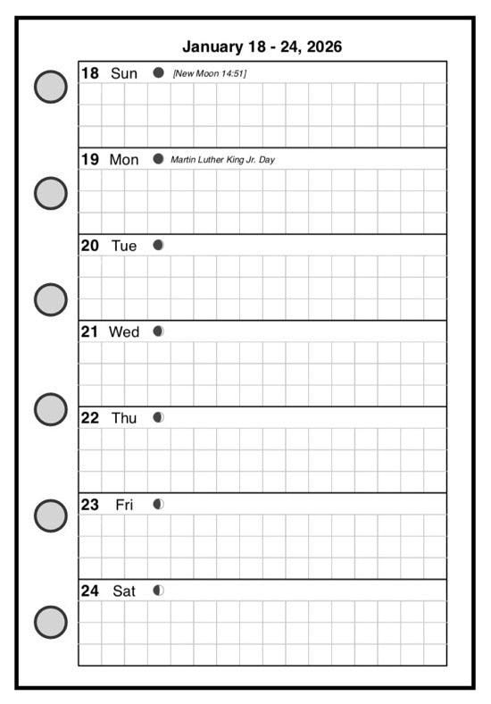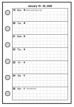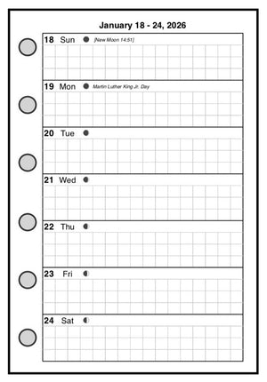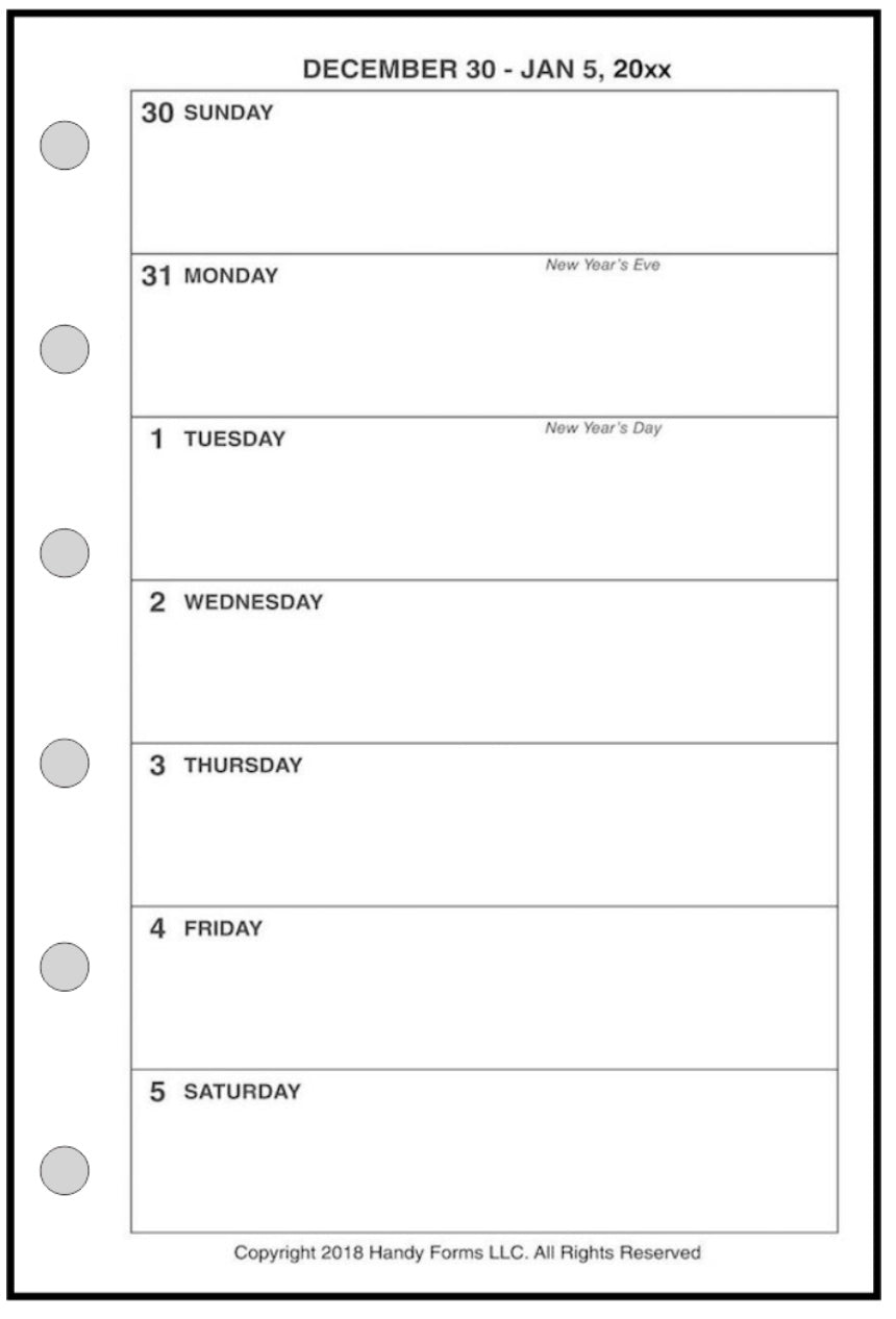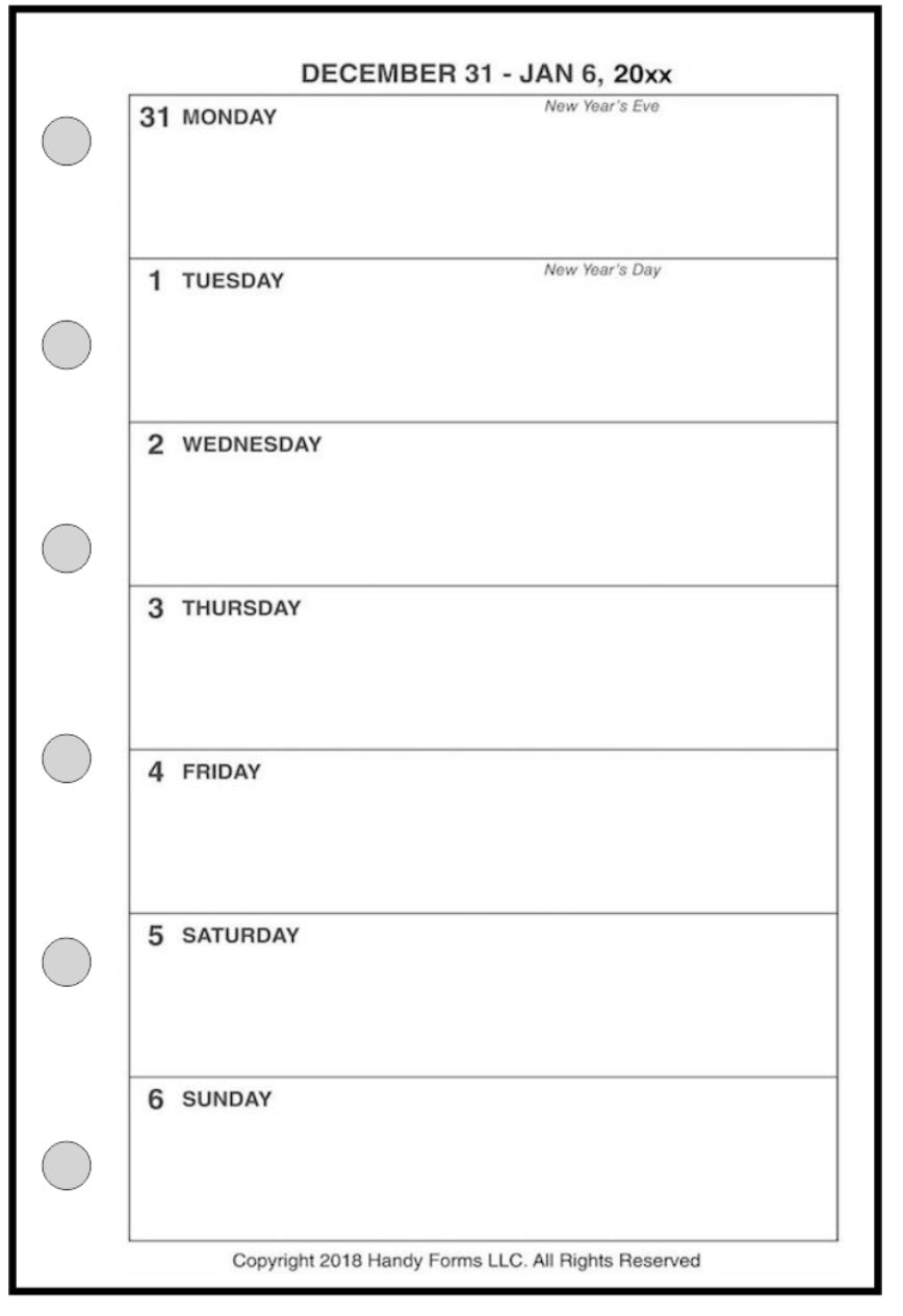 This is a weekly & monthly planner insert for Pocket-Plus size notebooks. Page is Pocket-Plus size, 3½" x 5". Choose the week start day as Sunday or Monday. The week is on 1 page and the days each have equal writing space.