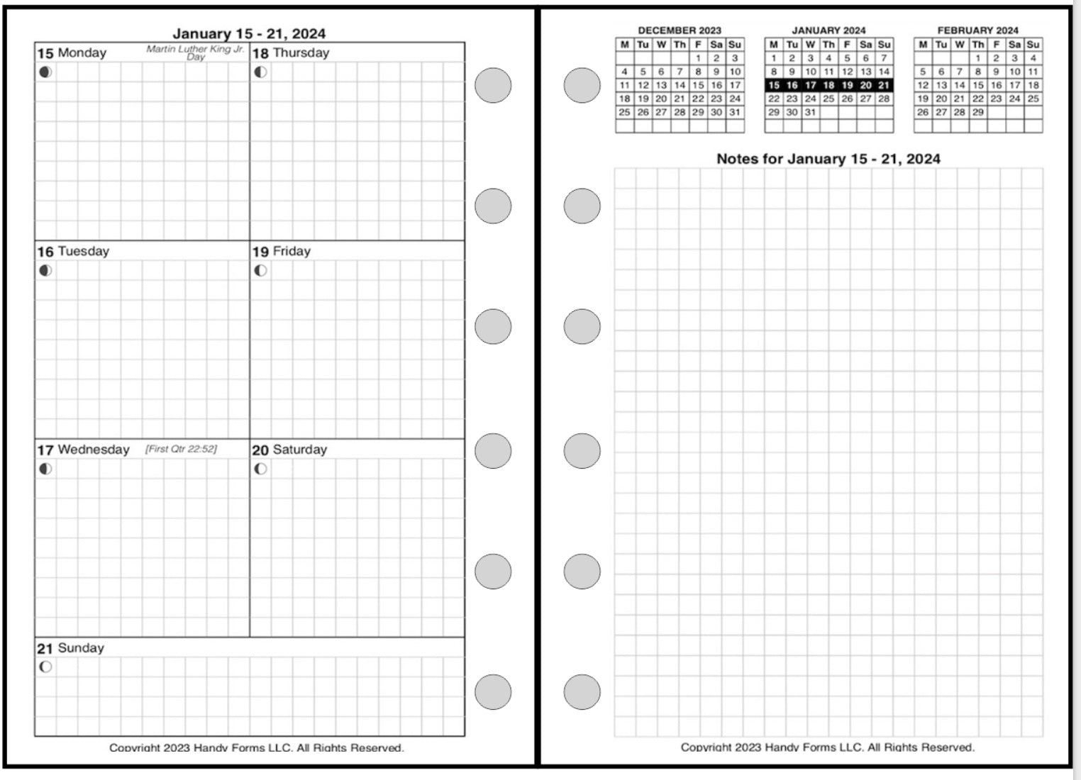 • Punched with 6 holes spaced ¾" (19mm) to fit Pocket Plus size binders.