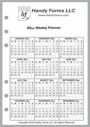 Also included are 1-page yearly calendars for the current year and next year.