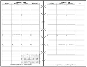 This is a daily and monthly planner insert for Levenger/Staples Junior size notebooks. Choose the week starting day as Sunday or Monday. Each day is on two pages. There is a checkmarked section for Daily Tasks, appointment times from 7:00 am to 7:00 pm, a Daily Monitor for tracking important things like expenses and messages, and a block for notes.