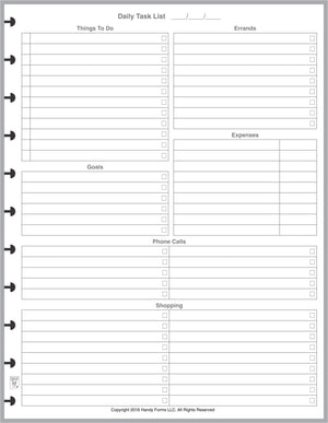 • Daily Task Planner for the Levenger Letter size notebook, including to-do list, errands, phone calls, shopping and expenses.
