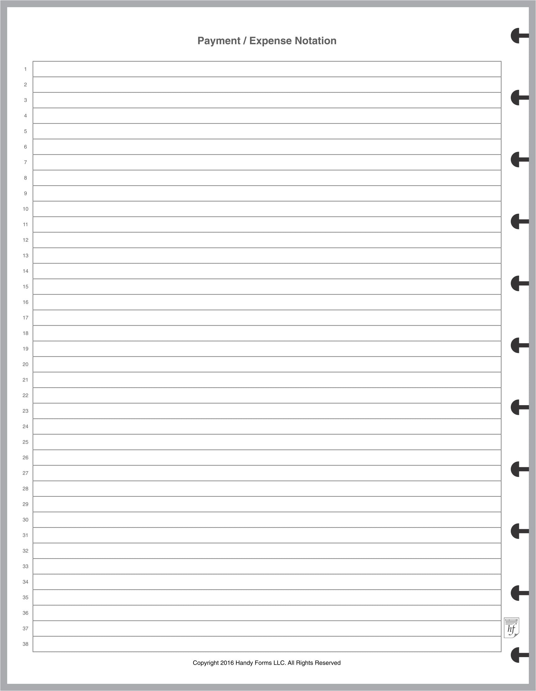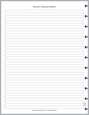 If you use a Levenger Letter size organizer, this handy planner insert will help you keep track of payments and expenses, and can also be your check register. With the extra space on the back for notes, you can record business information such as expense purpose, receipt references, people present, etc.