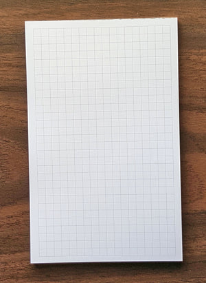 Line grid padded paper, graph paper, size 5" x 8". Pads are glued on the short edge with a cardboard backing.