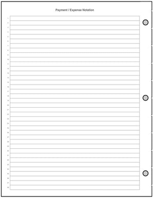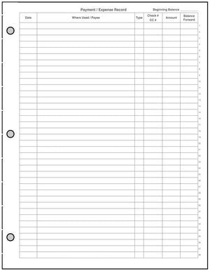 If you use a US Letter 3-Ring organizer, this handy planner insert will help you keep track of payments and expenses, and can also be your check register. With the extra space on the back for notes, you can record business information such as expense purpose, receipt references, people present, etc.