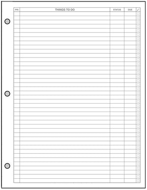 Here's a handy to-do list for your US Letter 3-Ring organizer. Record each item you have to do. Assign a priority and a due date/time, then check it off as you complete the task. There are 50 sheets in a packet.