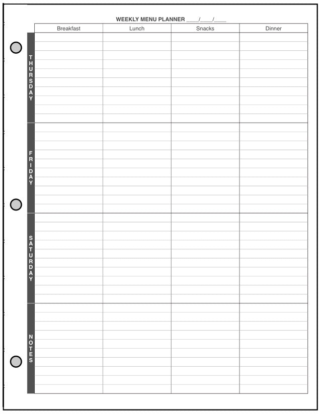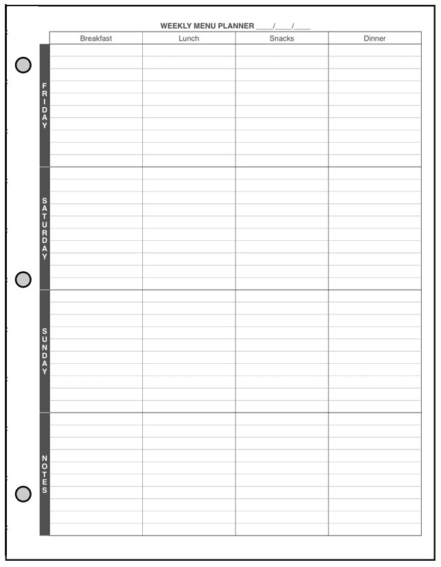 • Menu Planner and Shopping List for the US Letter 3-Ring notebook.